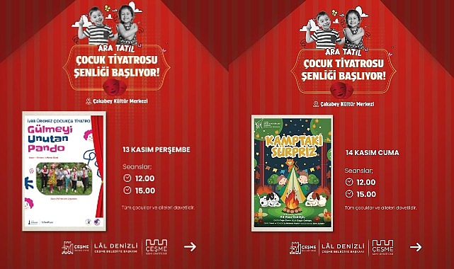 Çeşme Belediyesi, çocuklara eğlenceli ve öğretici bir ara tatil yaşatmak için dopdolu bir tiyatro şenliği düzenliyor.12–16 Kasım tarihleri arasında Çakabey Kültür Merkezi’nde gerçekleşecek “Ara Tatil Çocuk Tiyatrosu Şenliği”, birbirinden renkli oyunlarla minik izleyicileri sahne büyüsüyle buluşturacak.