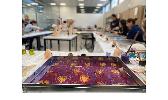 Bir başka atölye ise ebru sanatı branşında yapıldı. “Ebru Sanatıyla Çantada Ne Var” adlı atölyede ebrunun eşsiz desenleriyle bir çanta tasarımının yolculuğu ele alındı. Yaratıcılığın ortaya çıkarıldığı söz konusu eğitimde gençler hem önemli bir sanatla buluştu hem de çantalara yaptıkları ebruları yerleştirdi. Çalışma ile ortaya birbirinden güzel ebru desenli çantalar çıktı.